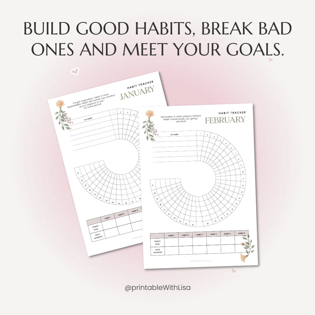 - ✔️ 12-Month Circular Habit Tracker Set (One for Each Month)