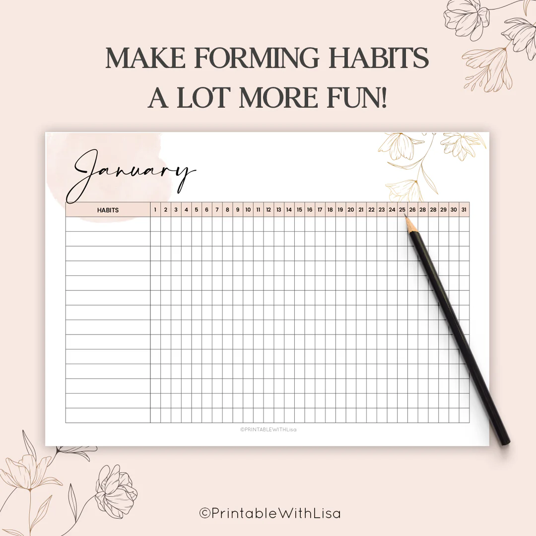 - Track up to 15 daily habits on a spacious, easy-to-read landscape layout
