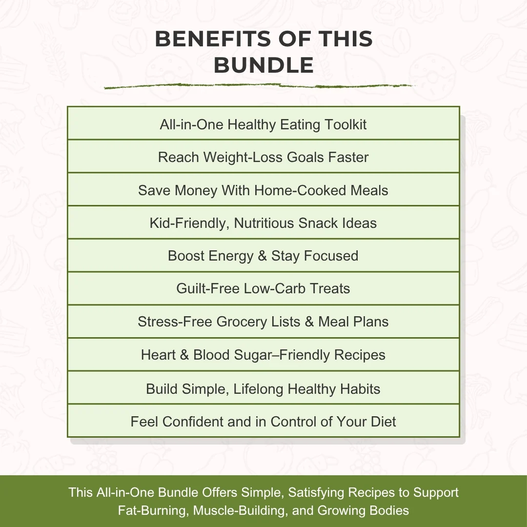 Fuel your goals with this expert-designed bundle featuring healthy, satisfying recipes for kids, families, and anyone seeking to eat clean and live well. Whether you're craving protein-packed snacks, planning keto meals, or feeding growing little ones, this collection has you covered. Save time, feel confident, and nourish your household—without the overwhelm.